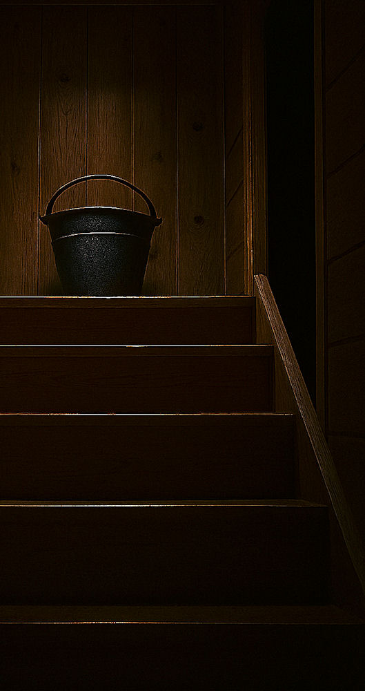 僧侶の賢哲が警察を呼びに行く時、折檻部屋の前に置いてあった、バケツを蹴とばして、階段を濡らしてしまいました。