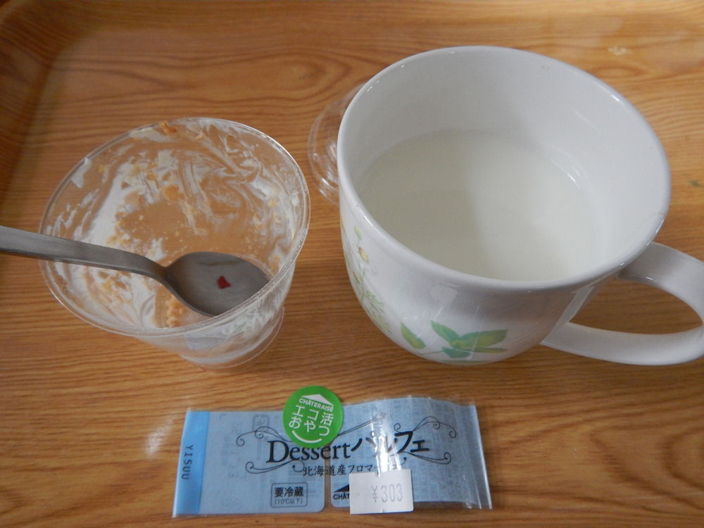 シャトレーゼの「Dessertパルフェ 北海道産フロマージュ」を食べた後に飲む、電子レンジの自動で温めたホットミルク。