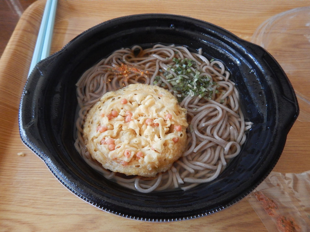 10%引きの誘惑負けて、かってしまったイシメン株式会社の天ぷらそばが、今日の昼食。お昼ご飯が270円は安上がり!と喜んでいる、私。